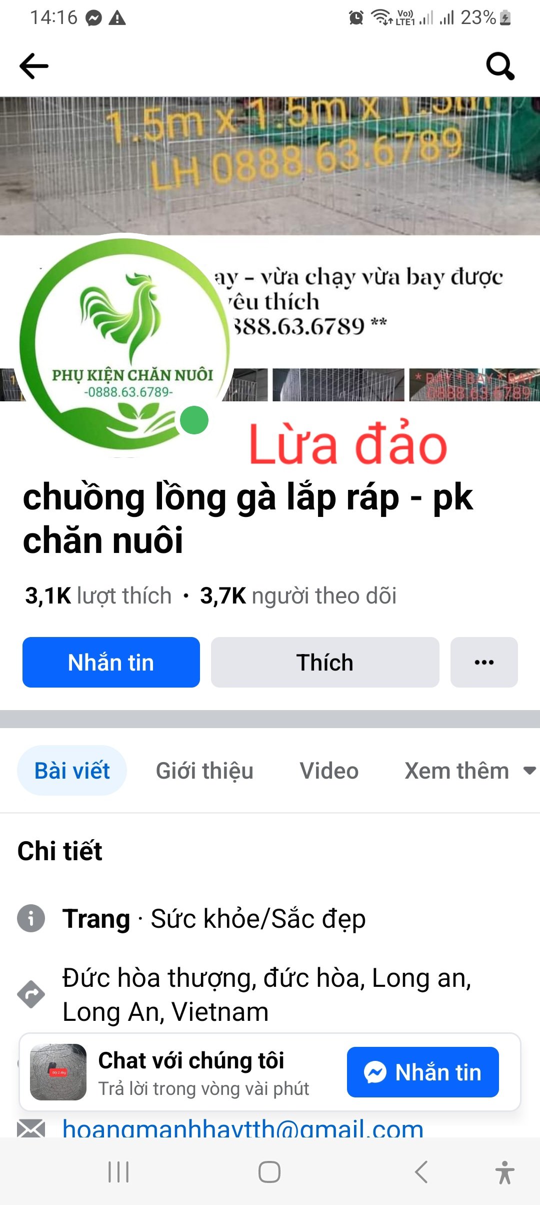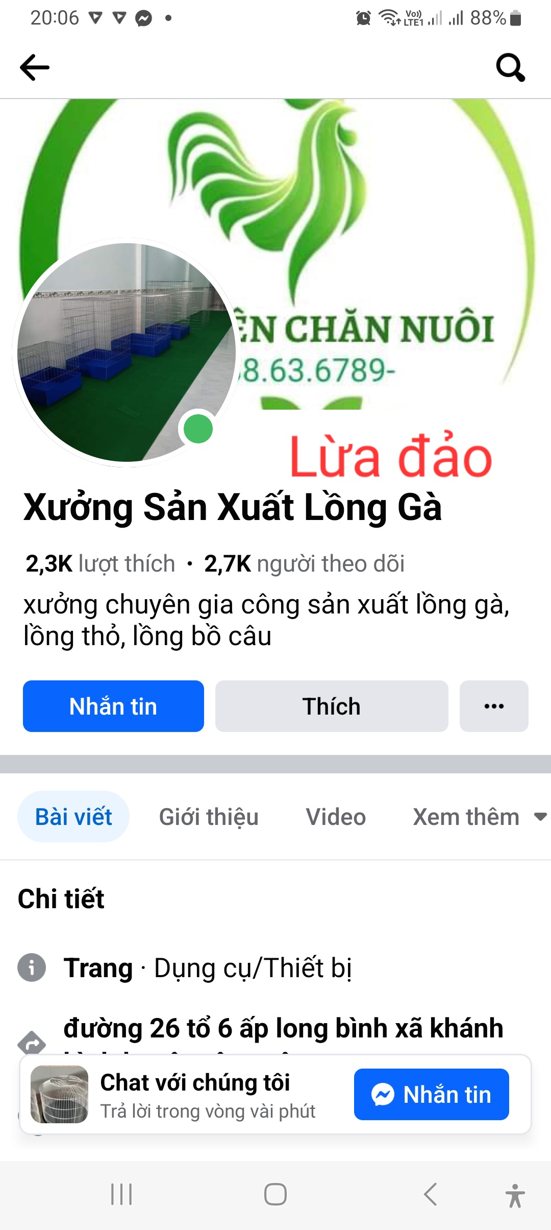 Tên facebook: Xưởng sản xuất lồng gà. phụ kiện chăn nuôi. chuồng