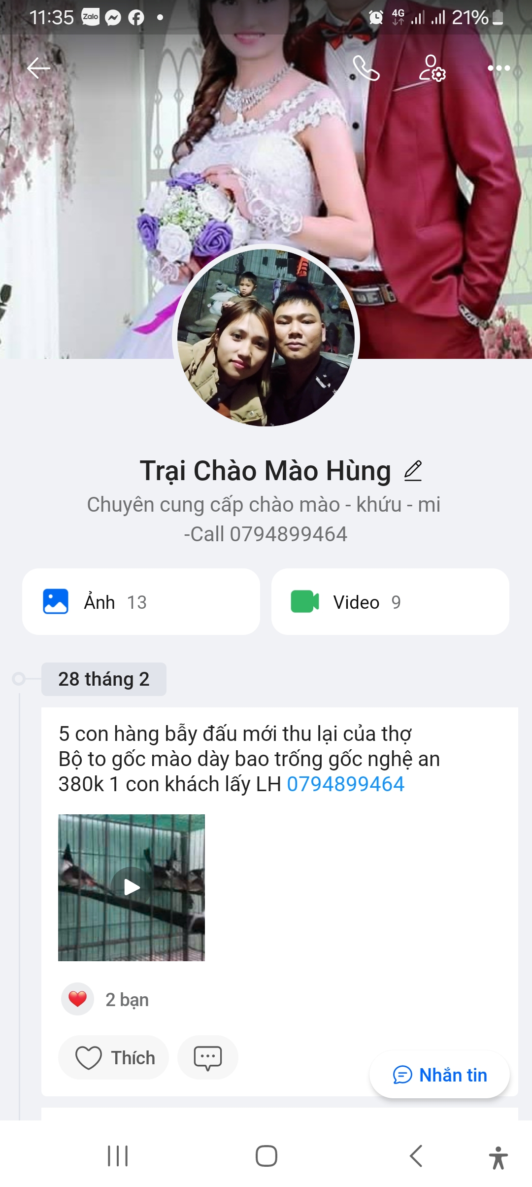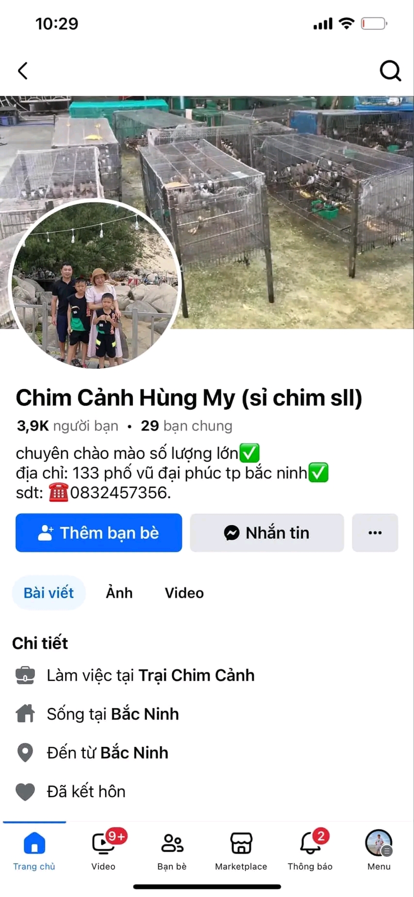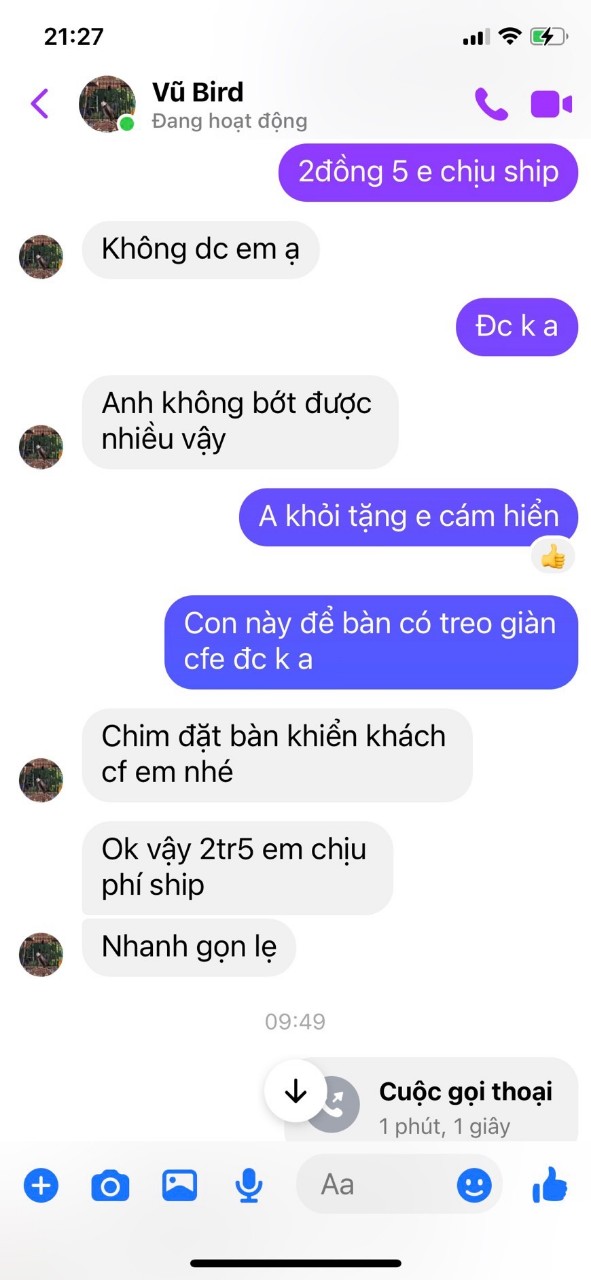 Tên facebook: Chim Cảnh Hùng My (sỉ chim sll)