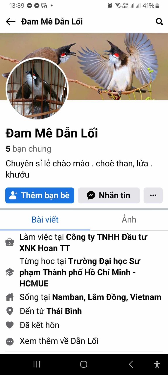 Tên facebook: Trại Chào Mào Hùng