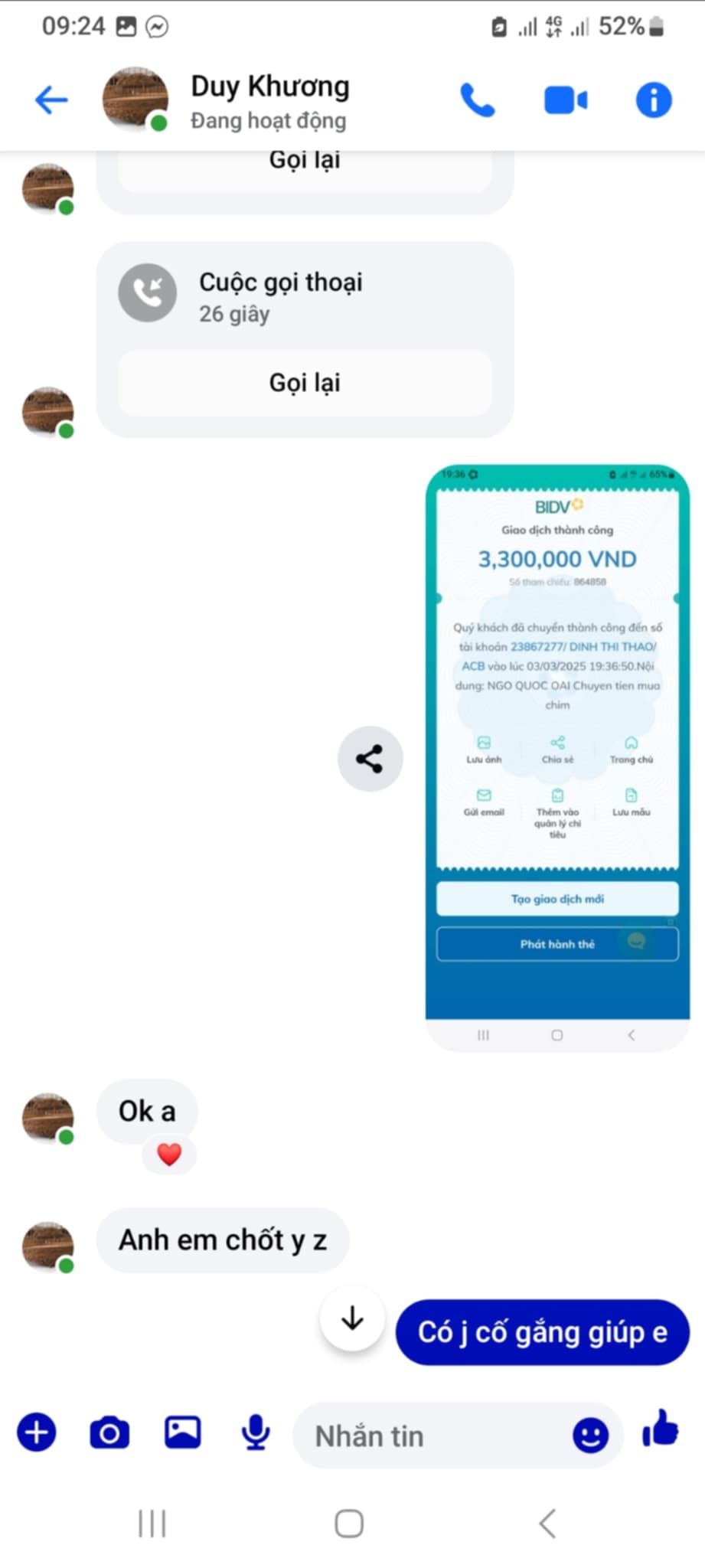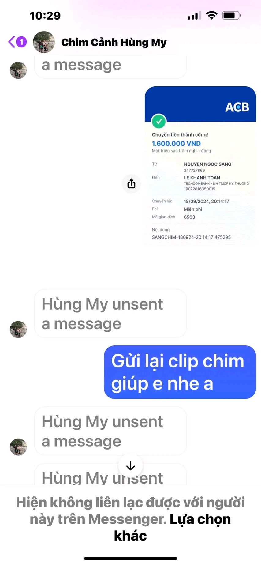 Thông tin chi tiết: Chỉ nick Quốc Oai ck 4.1 triệu nhưng lừa đảo Duy Khương không chuyển chim, cũng không trả lại tiền