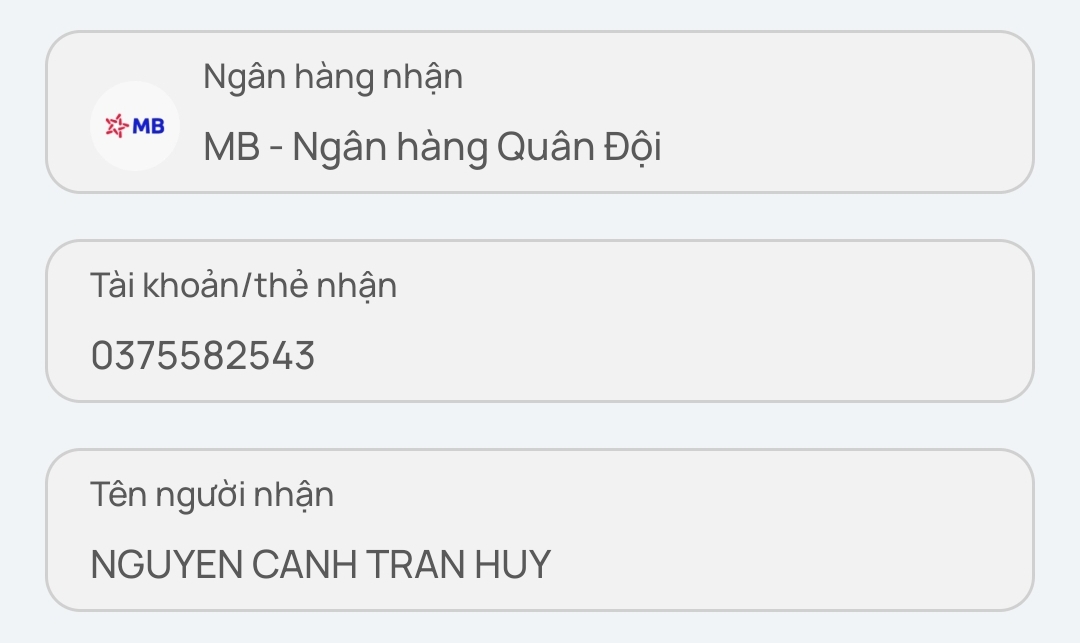 Trại Chào Mào Hùng - tên chuyển khoản NGUYEN THI NO
